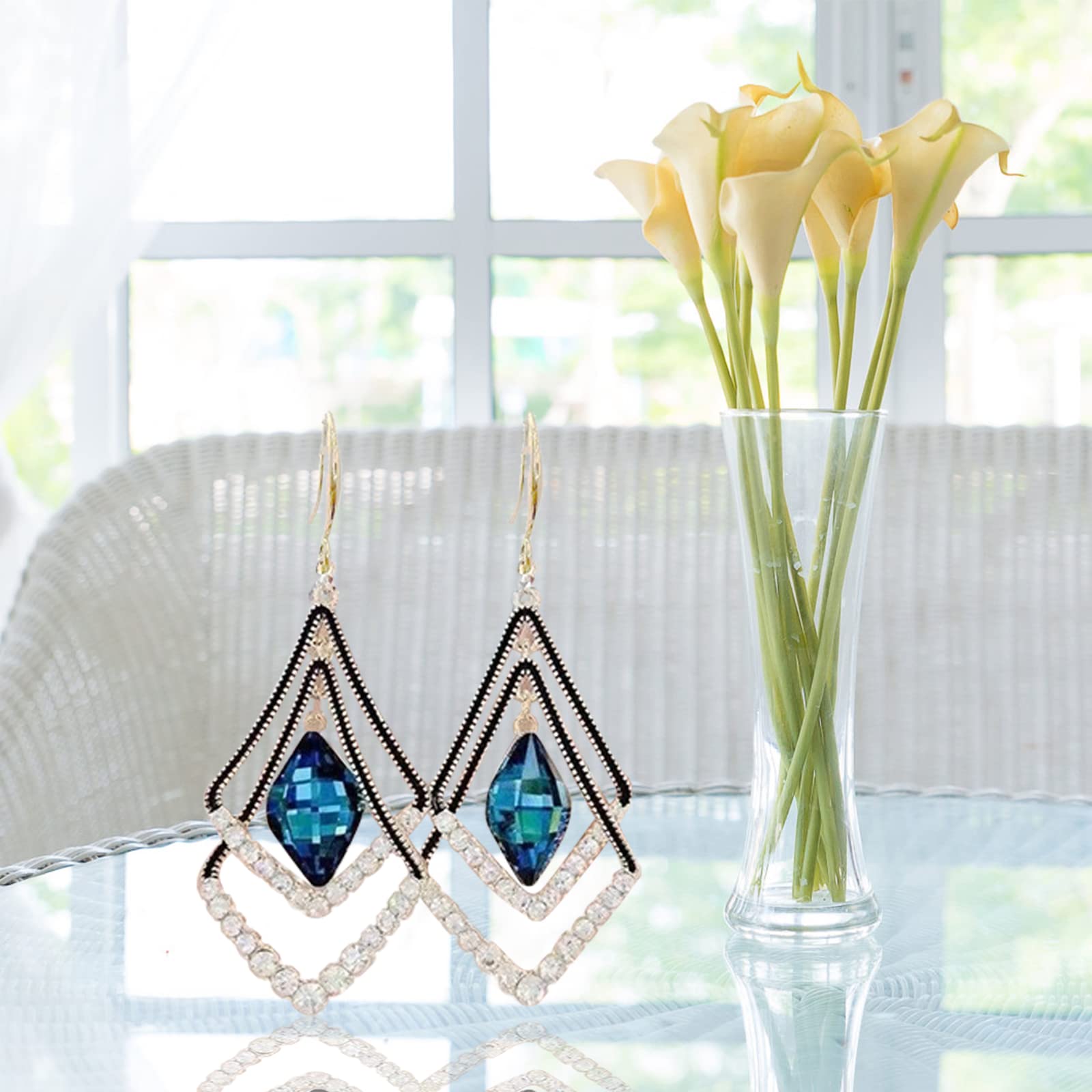 - Blue Zircon Tear Drop Dangle Earrings Sterling Golden Drop Earrings Gemstones Wedding Jewellery for Women